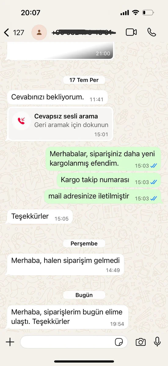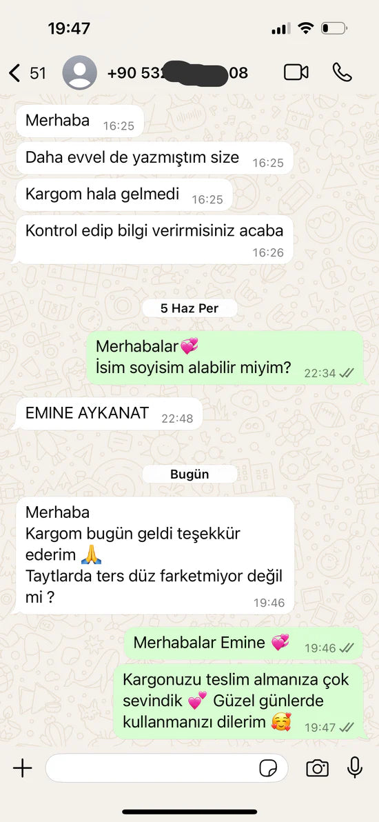 Siparişleriniz aynı iş günü özenle hazırlanıp kargoya verilir.